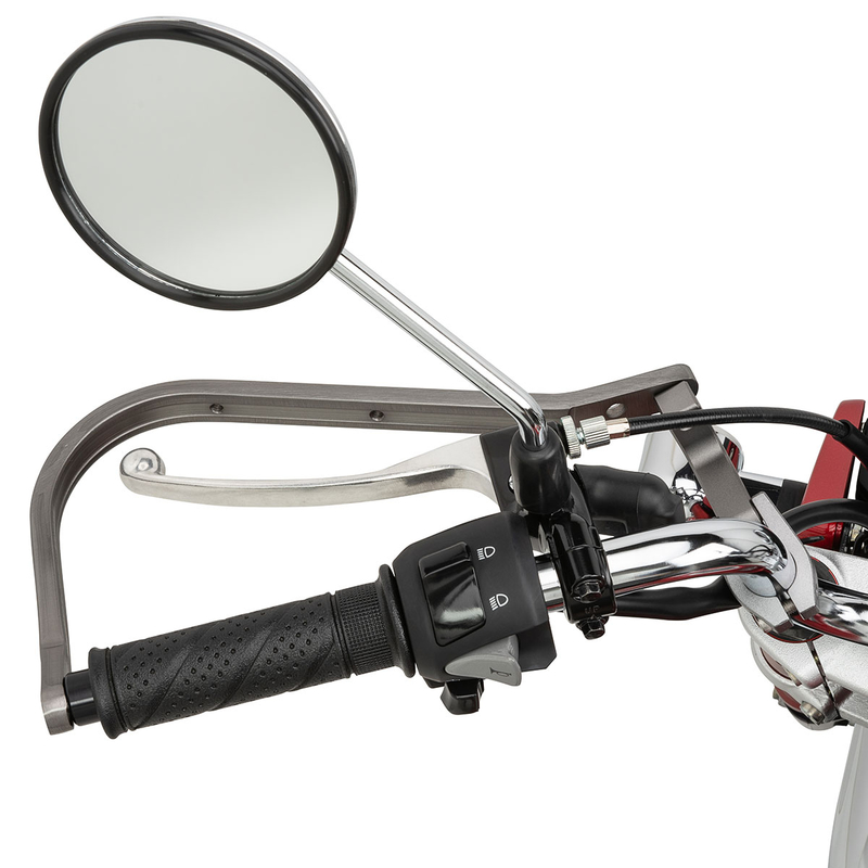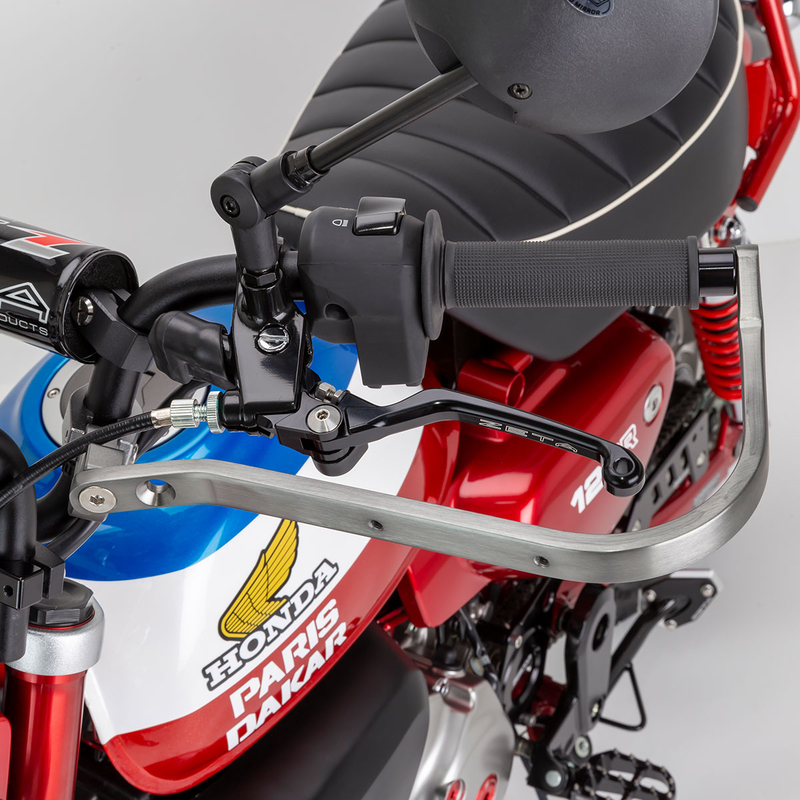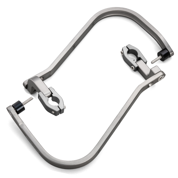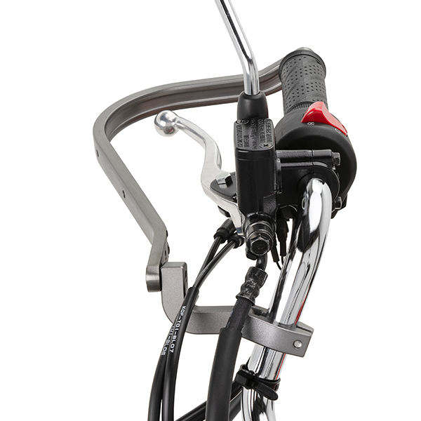 Handle clamps are specially shaped to avoid interference with brake hoses and wires, and can be secured in place.