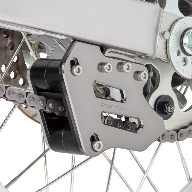 Easily removable chain guide block can be removed for street use with minimal chain slap.