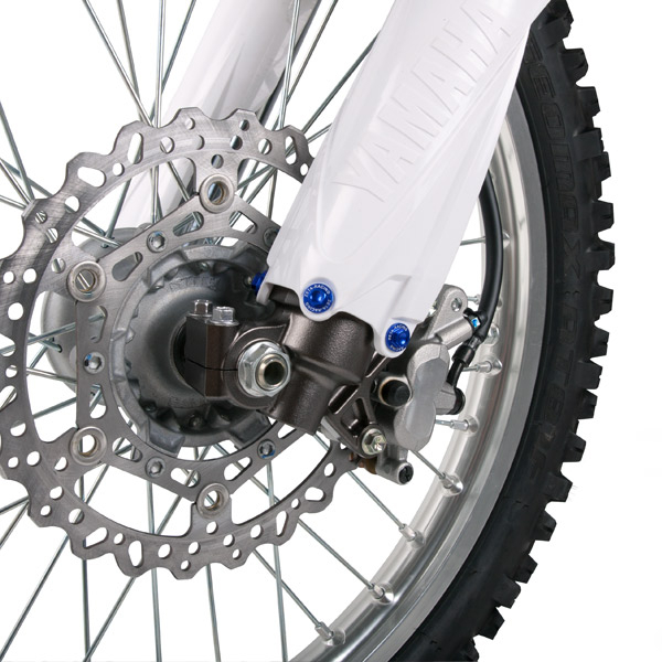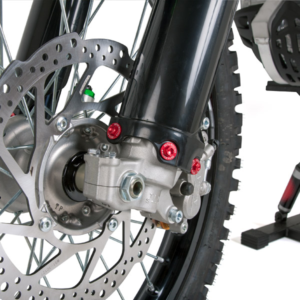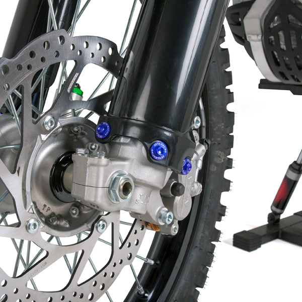 Kit specifico realizzato in alluminio alleggerito per rendere il blocco del mozzo anteriore piu' leggero.Disponibile per ogni modello non solo per le giapponesi ma anche per KTM e HUSQVARNA.