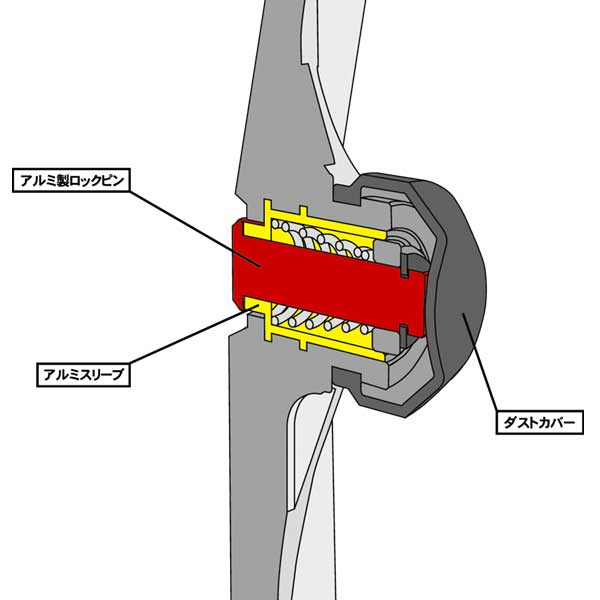 Lock pins are made of lightweight aluminum alloy 7075-T6.