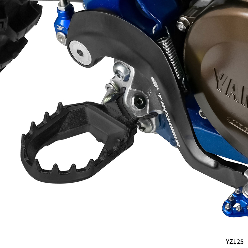 The width of the pegs is 60mm from front to rear, which improves stability when standing and allows freer foot control. The increased width compared to stock extends mainly to the rear and does not interfere with shifting operations.