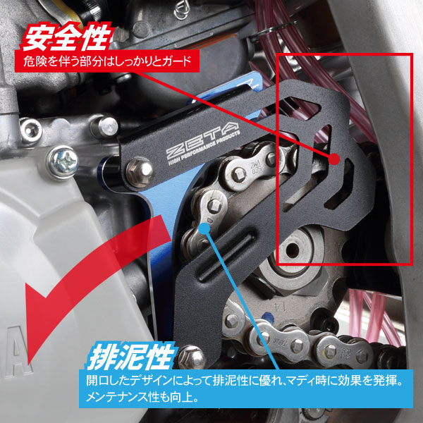 By replacing the stock chain guide with the included chain roller, frictional resistance due to chain flutter is further reduced.