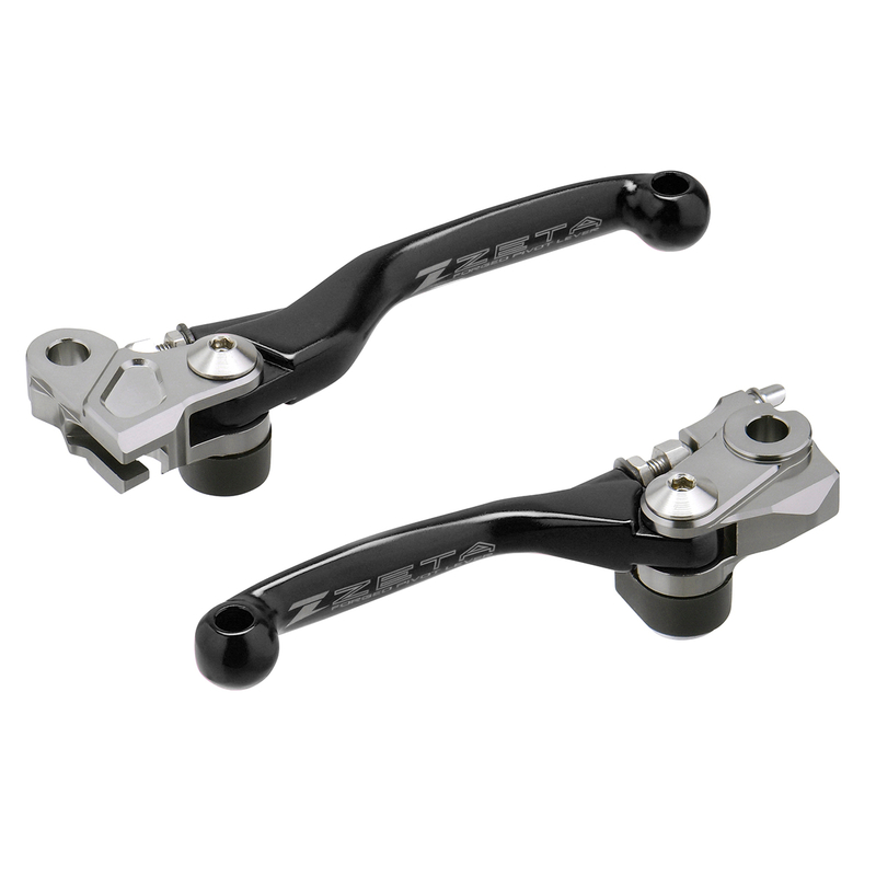 Set di leve in alluminio forgiato e anodizza to per modelli MX/Enduro. La molla di ritorno permette alla leva di piegarsiverso l'esterno evitando flessioni e rotture. Colori disponibili: rosso, blu, arancio e nero in base aimodelli di moto.