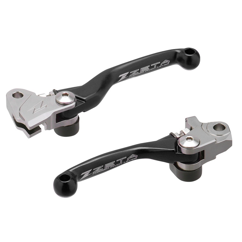 Set di leve in alluminio forgiato e anodizza to per modelli MX/Enduro. La molla di ritorno permette alla leva di piegarsiverso l'esterno evitando flessioni e rotture. Colori disponibili: rosso, blu, arancio e nero in base aimodelli di moto.