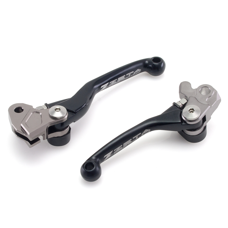 Set di leve in alluminio forgiato e anodizza to per modelli MX/Enduro. La molla di ritorno permette alla leva di piegarsiverso l'esterno evitando flessioni e rotture. Colori disponibili: rosso, blu, arancio e nero in base aimodelli di moto.