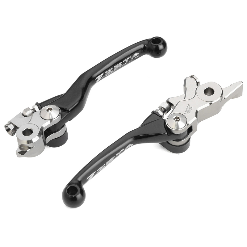 Set di leve in alluminio forgiato e anodizza to per modelli MX/Enduro. La molla di ritorno permette alla leva di piegarsiverso l'esterno evitando flessioni e rotture. Colori disponibili: rosso, blu, arancio e nero in base aimodelli di moto.